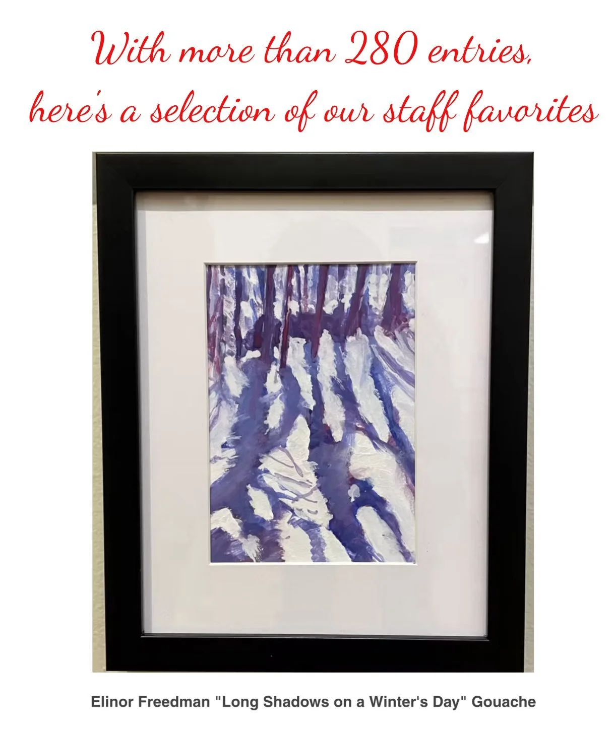 Long Shadows on a Winter’s Day was chosen as a Staff Favorite at Wrap It Up, an annual members exhibit and sale at the Cape Cod Museum of Art in Dennis, MA